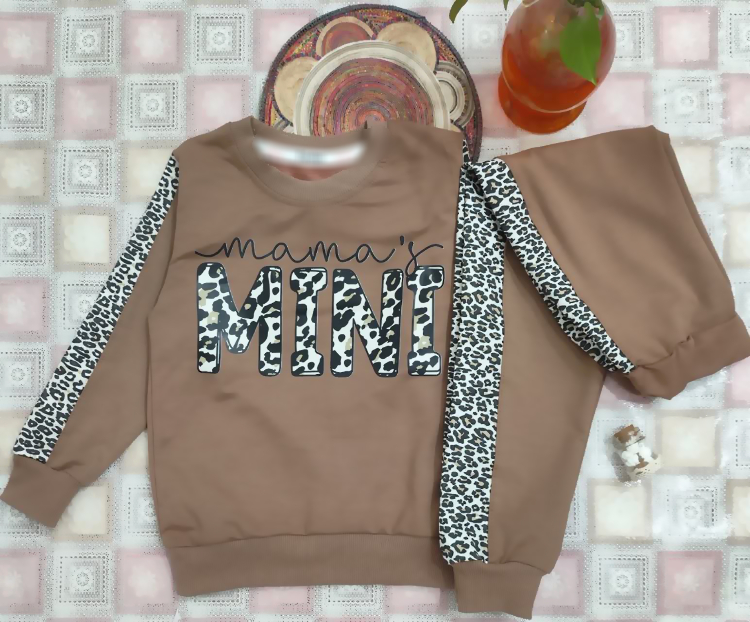 ست دخترانه پلنگی (بلوز شلوار) طرح MINI دورس پنبه 2 تا 7