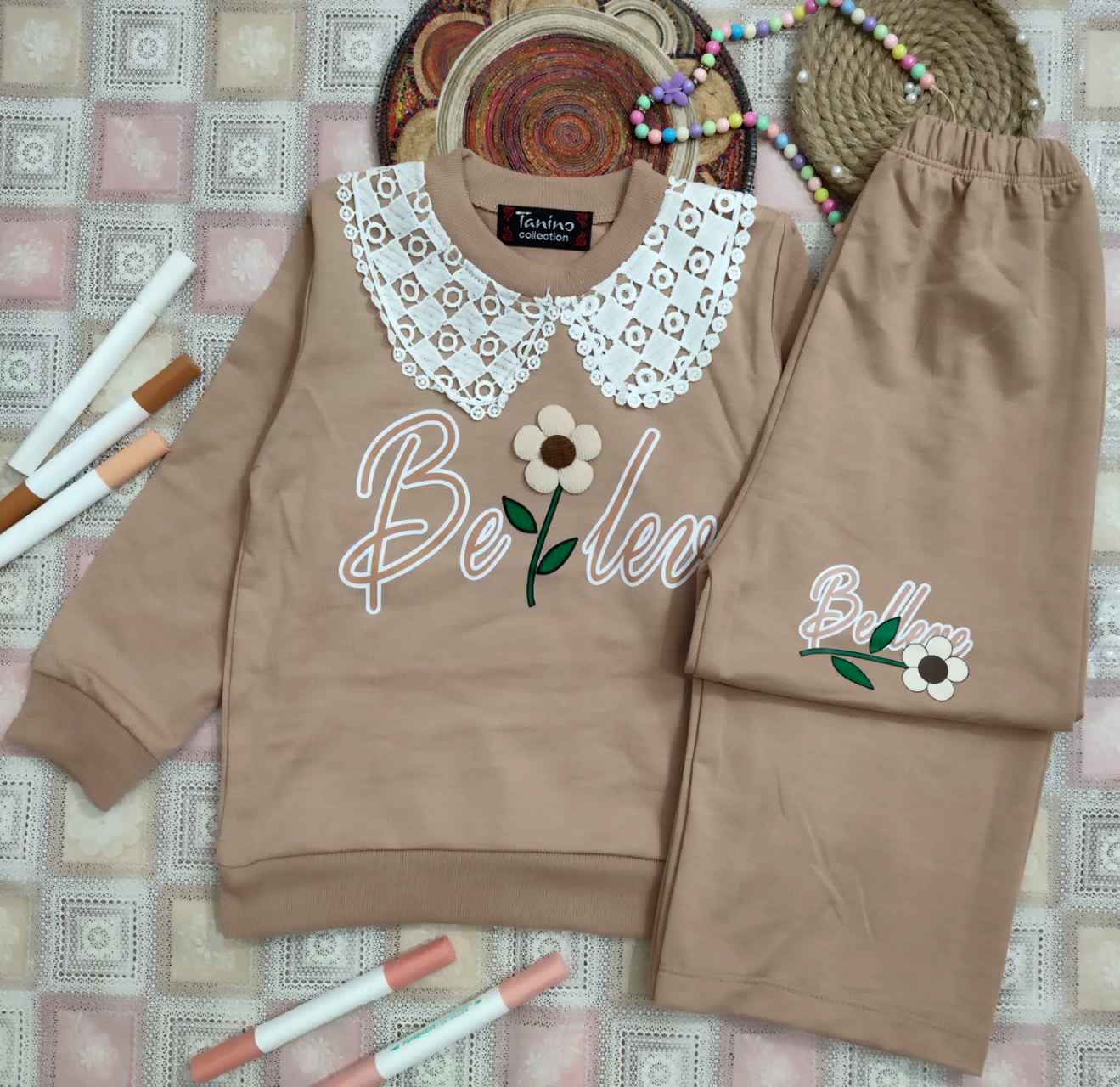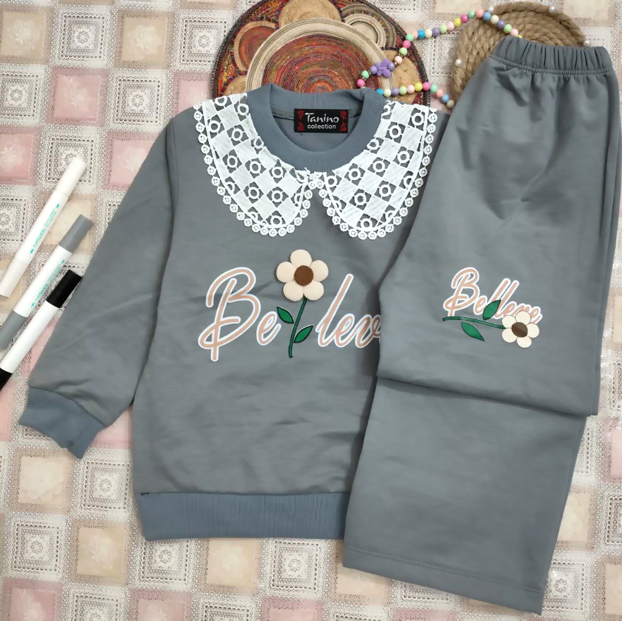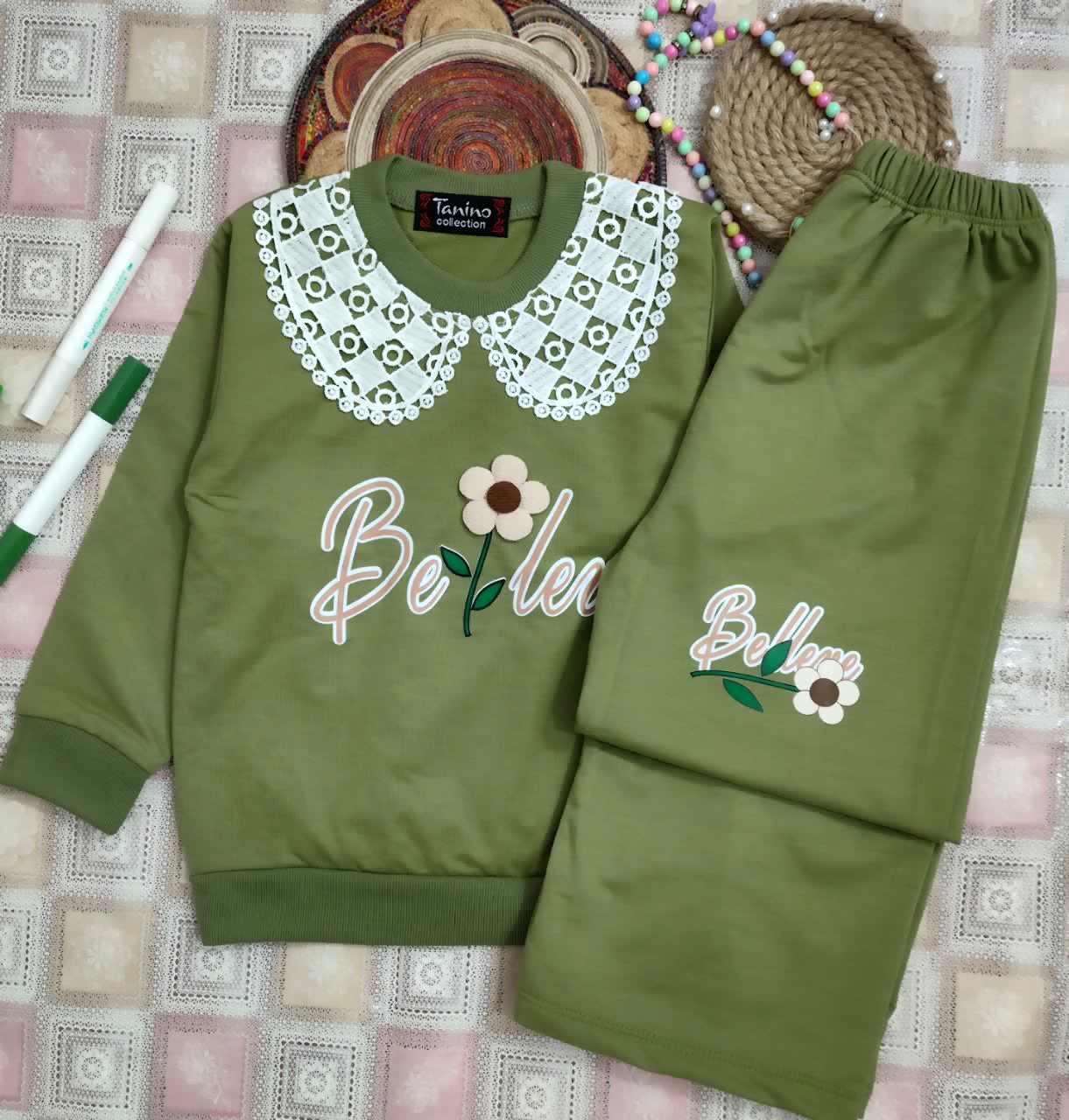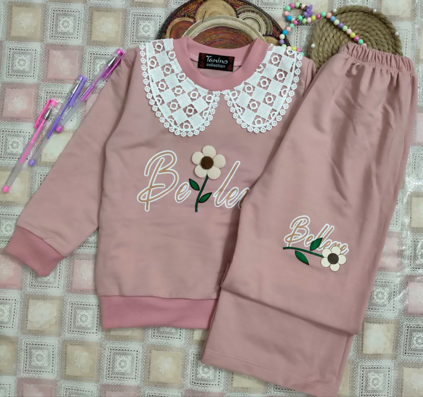 🌈رنگبندی مطابق عکس 🌸مناسب سن 2 سال تا 5سال 🌸لطفا سایز پوشاک را با فرزند دلبندتان مطابقت دهید ✅سایز :45ـ40 ❤️سایز40= پهنا 32.قدبلوز41.آستین33 قد شلوار57 ❤️سایز45: پهنا 34.قدبلوز47.آستین 39 قدشلوار65