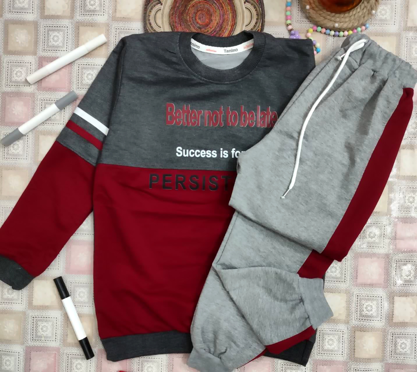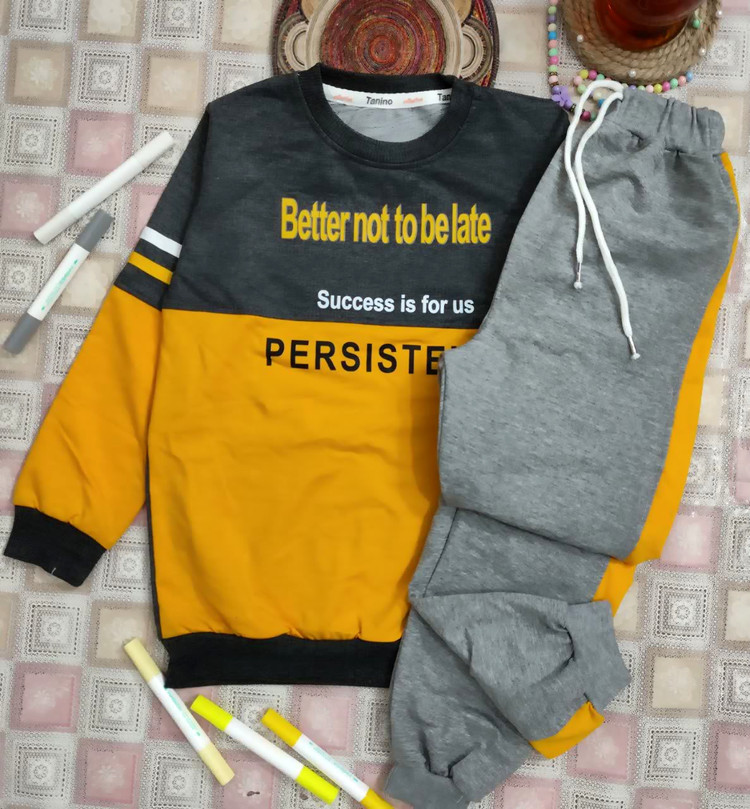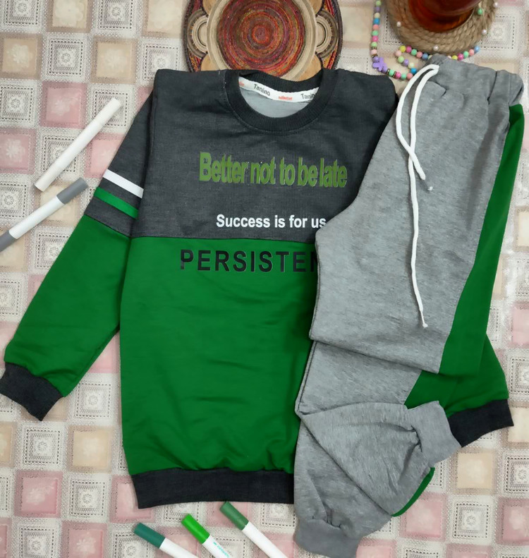 ست پسرانه(بلوز شلوار) طرح متن لاتین پنبه دورس مناسب 8تا 13 سال